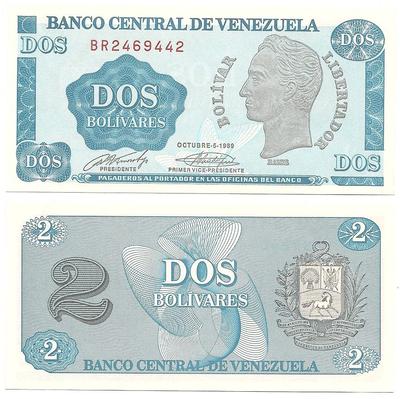 Billet de 2 Bolívares de la Banque centrale du Venezuela N° Pick 69 (5 Octobre 1989).