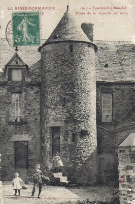 Carte postale ancienne de Tourlaville : ferme de la Tourelle - XIIème siècle - 1617.