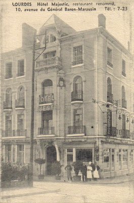 Carte postale ancienne de Lourdes : hôtel MAJESTIC - restaurant renommé - 10 avenue du Géneral Baron-Marausin - Tél. : 7-23.