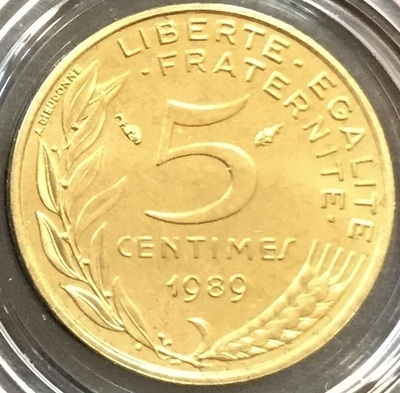 Philatélie 50 vous propose la pièce de 5 Centimes 1989 Marianne FDC sorti du coffret fleurs de coins