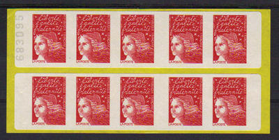 Carnet de 10 timbres de France N° Yvert et Tellier 3085 a C3 avec variété : piquage à cheval de la couverture.