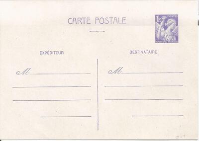 Référence catalogue Yvert et Tellier : 651-CP1 : Type Iris 1f.20 violet