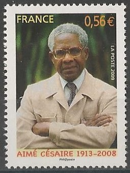 Timbre de collection Yvert et Tellier n° 4352, émis en 2009. Personnalité: Aimé Césaire, poète et homme politique.