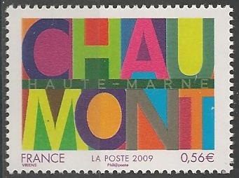 Timbre de collection Yvert et Tellier n° 4355, émis en 2009. Série touristique: Chaumont (Haute-Marne). Graphisme réalisé par Frank Vriens.
