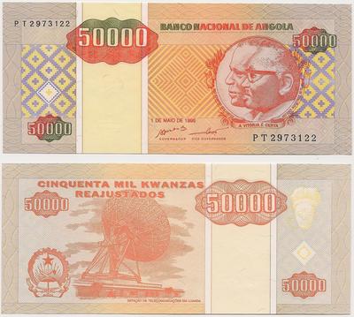 Philatélie 50 vous propose le billet de collection de 50 000 Kwanzas Reajustados de la Banque Nationale de l'Angola N° Pick 138 (1er Mai 1995).