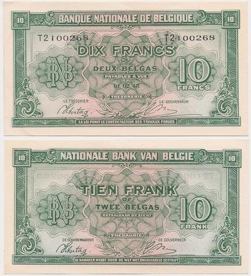 Billet de 10 Francs de la Banque nationale de Belgique N° Pick 122 (1er Février 1943).